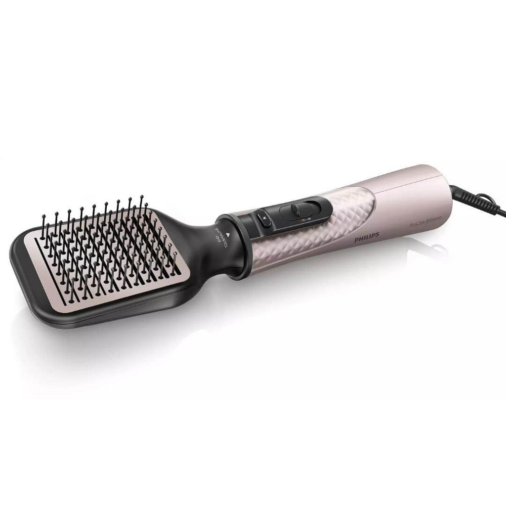Il n'a jamais été aussi simple de se faire un brushing ! Grâce à sa brosse plate innovante, la brosse soufflante ProCare Brilliance vous aide à créer un style naturellement lisse, tandis que les ions supplémentaires et le revêtement en céramique tourmaline vous donnent des cheveux brillants et sans frisottis.